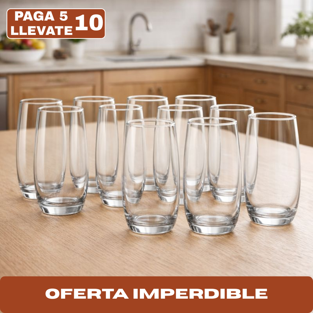 Agua bien fresca, jugos naturales, gaseosas o tragos largos. Su formato long drink es práctico y elegante al mismo tiempo. Son esos vasos que terminás usando siempre porque quedan bien con todo y resultan cómodos para todas.